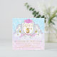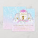Convites de aniversário de cinco anos com unicórnios pastéis bonitos e flores em um lindo fundo azul turquesa e rosa brilhante. Esses convites de aniversário de 5 anos para meninas são facilmente personalizados para o seu evento, basta adicionar os detalhes do seu evento. Este é um design impresso sem glitter, etc.