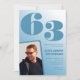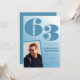 Convites de aniversário de 63 anos com gradiente azul para ele com foto retrô