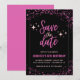 Convites de aniversário de 6 cor-de-rosa Salve a data preto Glitter Glitter Glitter Sparkle