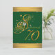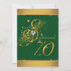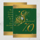Convite de aniversário de 70 anos verde e dourado elegante com fonte brilhante bonita em fundo verde e dourado. Este convite de aniversário de setenta anos verde esmeralda e dourado é facilmente personalizado para o seu evento, adicionando detalhes do evento, estilo de fonte, tamanho e cor da fonte e texto. Este é um design impresso sem brilho real, joias, folha, etc.