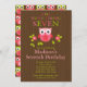 Comece sua Sétima festa de aniversário com nossos adoráveis convites de festas aniversários de criança de coruja rosa e vermelha. Convite perfeito para a sua celebração de festa de aniversário de 7! Nossos convites para corujas doces apresentam uma coruja bonita sentada em um galho de folha verde com flores e é colocada sobre um fundo marrom-na moda. Nosso convite à festa de aniversario de meninas da coruja apresenta um histórico único de coruja. Visite o nosso compro por correspondência. Obrigado, cartões de nota, adesivos de aniversário, obrigado que você tenha adesivos e selos postais. © Petit Tatti