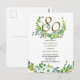 Este convite de aniversário elegantemente belo com folhas verdes e folhagens e branco com um toque de flores azuis é perfeito para uma celebração de 80 anos de aniversário para mãe ou pai, avós, colega ou outros. Basta editar o texto para atender às suas necessidades exatas. Possui fontes modernas manuscritas e em estilo caligráfico em dourado e preto.