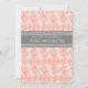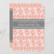 Convites de aniversário 80 personalizados de cor-de-pêssego elegante, cor-de-rosa, cinza e padrão clássico de damagem floral. Adicione seu nome e detalhes da festa para um convite de aniversário exclusivo e na moda.