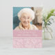 Convites de aniversário personalizados de 90 de fotos em um modelo elegante, cor-de-rosa rosa e branco, floral e listras. Adicione seu nome, foto e detalhes da festa para um convite de aniversário exclusivo e na moda.