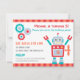 Convide seus convidados para uma festa tematizada de robôs com esses convites de aniversário coloridos e bonitos de robôs! Ele apresenta um brinquedo robot vermelho e azul feliz que tem um vencedor chave nas costas. O robô também tem uma tela em seu corpo para personalizar a idade da criança. Excelente para aniversários que adoram o gênero de ficção científica e brinquedos de robôs! Placa de cor variável de cinzas amarelas, laranja, azuis, vermelhas e com engrenagens e corodas e faixas para decoração. Personalize facilmente com os detalhes do seu partido!