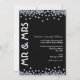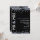Um convite de festa de aniversário de casamento de diamante moderno e bonito, em preto e branco com sotaques em azul pálido. Nas bordas superior e inferior do convite estão espalhados diamantes cintilantes, formando uma borda parcial. No lado esquerdo do convite está "Sr. e Sra." em uma fonte em negrito, enquanto a redação do convite está alinhada ao lado direito. Uma mistura divertida de estilos de fontes modernas foi escolhida para acentuar o design.