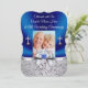 Convite de Aniversário de Casamento de 65 anos personalizado com foto cristã impressionante em Safira. Mostrado com forma de convite no estilo de suporte com brilho de Pérola. FOTO do casal, Nomes e informações da festa de aniversário de 65 anos. LIGUE para a Designer Linda: 239-949-9090 para AJUDA na personalização destes belos Convites de Aniversário de Safira Personalizados ou posso ALTERAR o Design, Produto, Ocasião, Ano, Pedra Preciosa do Coração ou criar ideias de festa de aniversário de casamento de 65 anos para pais, avós e seu aniversário de casamento de marco especial.