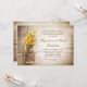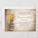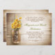 Campos românticos de madeira rústica e jarro de pedras com flores silvestres amarelas, festas de aniversário de casamento ou convites de janto de aniversário de aniversário. Eu sugiro um belo papel de textura de linho para este design.