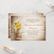 Fundo de madeira rústico romântico e jarra de pedreiro com flores amarelas e brancas, festa de aniversário de casamento ou convites para jantar de aniversário de casamento. Sugiro um papel Linen para este design.