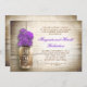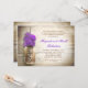 Fundo de madeira rústico romântico e jarra de pedreiro com flores roxas, convites para festa de aniversário de casamento ou jantar de aniversário de casamento. Sugiro um papel de textura de linho lindo para este design.