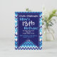 Um convite de aniversário ou convite de evento de padrão divertido e ousado, com padrões azuis, lacrimejantes e turquesas chevron zigzag e geométricos. O verso tem o design de padrão de cor do cheio. Este convite é mostrado como um convite de aniversário de 13, mas esses modelos de convites de festas de aniversário fofos podem ser facilmente usados para crianças ou adultos, ou podem ser personalizados para qualquer tipo de festa ou evento. Basta preencher o texto com os detalhes do seu próprio partido. Se quiser alterar a cor do texto ou reorganizar as coisas, basta usar o botão "Personalizar". O verso do convite tem o mesmo padrão colorido que o lado frontal.