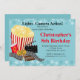 Comece sua Festa de aniversário Lights, Camera Action Movie com o convite de aniversário da noite de cinema giro com uma câmera de filme preta com pipoca, uma passagem de refrigerante e filme sobre um fundo azul claro com estrelas A parte de trás do convite apresenta uma cor preta coordenadora. Totalmente personalizável para você com suas informações. ©Babystar Designs