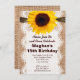 Rústica Country Burlap e Lace Impressão Sunflower Convites de aniversário. O arrombamento e o local são apenas designs impressos, não tecido real. Excelente para festas de aniversário do país!