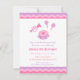 Faça uma nota para este dia especial! Porque estamos celebrando o aniversário desta menina! A frase "faça uma nota" assume um duplo significado para os convidados lembrarem do evento que se aproxima e ao mesmo tempo fazerem música, pois é uma festa de aniversário com tema musical! Feminina e doce, este convite vem com instrumentos musicais, trompete, pandeiro com desenho de coração e chocalhos com listras na paleta de cores de tons roxos e rosa. Personalize facilmente com os detalhes da sua festa. Padrão de fundo de zigue-zague chevron rosa e roxo.
