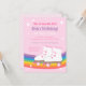 Amarre seus patins e role até esta festa de aniversário de patinação! Este convite tem um par de patins brancos com cadarços e rodas cor-de-rosa. Ao fundo, há um arco-íris com decorações de estrelas. Na página reversa, há um padrão de listras inclinadas. Colorido, alegre e brilhante, este design é mais adequado para meninas de aniversário! Personalize facilmente com os detalhes da sua festa.