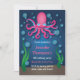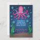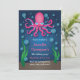 Um adorável convite de festa de aniversário de polvo rosa debaixo do mar. Este convite apresenta um polvo muito fofo com oito pernas e bolhas ao seu redor. O polvo tem olhos grandes e fofos e está flutuando acima do fundo do oceano. Este convite é muito fofo para uma festa de aniversário para crianças e adolescentes. Como é rosa, seria um ótimo convite para meninas.