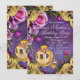 Convites de aniversário de princesa de contos de fadas com lindas rosas cor-de-rosa em um fundo roxo cintilante com uma bela carruagem real principesca. Você pode personalizar facilmente este convite de aniversário de princesa cor-de-rosa e roxo para o seu evento, simplesmente adicionando seus detalhes no estilo de letra e cor, e na redação de sua escolha. Este é um design impresso sem jóias reais, fitas, brilho, etc.