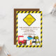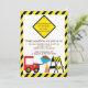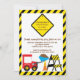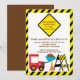 Comece a festa de aniversário do seu filho com o Convite de aniversário de caminhões de lixo com um caminhão de lixo vermelho giro com um cone de construção e uma borda de cuidado amarela e preta e um sinal de precaução. Perfeito para um primeiro aniversario de garotos ou qualquer aniversário de criança de idade. Totalmente personalizável por você com suas informações. ©Babystar Designs