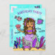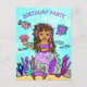 Uma maneira acessível e fofa de convidar amigos para a festa de aniversário de uma menina. Um estilo de arte popular desenhado à mão, uma sereia afro-americana ou hispânica caprichosa e seus amigos submarinos, convite de aniversário de menina em cores vibrantes.