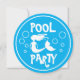 Os convites para o aniversário da Piscina do garoto com sereia. Sob o tema natação no mar, convites para Festas de aniversário infantis. Texto personalizado e cor de fundo. Design de peixe de conto de fadas giro bonito com nome e idade da criança. Modelo de tipografia química. Forma de corte do círculo redondo. Faça convites circulares para o 4º 5, 7 8, 9º, 10º 11, 13 B, etc. Texto e gráficos personalizados. Excelente para o verão!