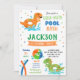 Festa de Piscina do Dinossauro T-rex Convites de Aniversário Três Dinomite Rex