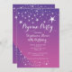 Convite de festas de pijama bonito para meninas adolescentes apresenta um fundo roxo com estrela branca estourada. Nosso convite popular de aniversário para o slumber party está disponível em nosso compro em várias opções de cores de na moda.