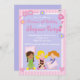 Comece sua festa de aniversário com o nosso convite de aniversário de pijama com as meninas mais bonitas segurando travesseiros e um ursinho de pelúcia. Nosso convite de aniversário do pijama é colocado sobre um fundo roxo com um pistão rosa, flores cor-de-rosa, flores roxas, lápis e esmalte. Bonito para uma doce festa de aniversario de meninas de adolescente. Visite o nosso compro para ver outros convites de aniversário modernos de na moda e para agradecer notas, autocolantes e carimbos de correio. © designs Babystar