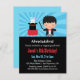 Um convite para corresponder à sua festa de aniversário de espetáculos mágicos! Ele tem um garotinho fofo em uma roupa mágica de jaqueta de casaco preto e arco vermelho com uma varinha mágica na mão. ele está executando o truque mágico popular de fazer o coelho branco que aparece do chapéu mágico. Excelente para festas onde você contrata mágicos ou se o aniversariante gosta de fazer truques de mágica. Personalize facilmente com os detalhes do seu partido.