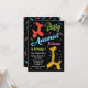 Convites de aniversário de animais de festas incríveis. Possui animais de balão, cachorro e girafa com galhos coloridos e confete. Excelente para uma festa de aniversário de menino ou menina! Ilustração desenhada à mão por McBooboos