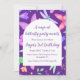 Celebre o dia especial da sua fada com estes encantadores convites de aniversário de borboletas de aquarela. Apresentando um delicado fundo de lavanda adornado com borboletas roxas e cor-de-rosa flecha, esses convites são perfeitos para um tema de festa química e mágica. Personalize com o nome, a idade e os detalhes da festa da sua filha para um toque verdadeiramente personalizado.