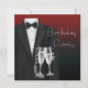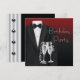 Modelo de convite de festa de smoking preto elegante. Este convite de festa preto e vermelho apresenta um smoking preto e um par de taças de champanhe e é facilmente personalizado para o seu evento, bastando clicar no botão "Personalize!" para começar a adicionar os detalhes do seu evento, estilo de fonte, tamanho e cor da fonte e texto. Por favor, note que todos os cartões e convites que você encontrará no Zazzle são gráficos impressos sem joias, laços, relevos, rebaixos ou peças adicionais.