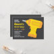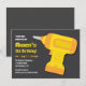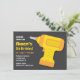 Este convite vem com um brinquedo de furadeira amarelo e laranja sobre um fundo preto cinza. Ótimo para crianças, especialmente meninos que amam ferramentas de homem e gostam de construir e criar suas próprias coisas. Personalize facilmente com os detalhes da sua festa.