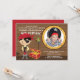 Comece a festa dos piratas com nossos bonitos amigos da Ahoy, Convite de aniversário de fotos com um crânio de pirata com espadas em um fundo vermelho aflita. Perfeito para um primeiro aniversario de garotos ou qualquer festa de aniversário de criança. Totalmente personalizável por você com suas informações e fotos. ©Corazón Dulce