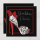 Convites de festa de aniversário elegantes de zebra vermelha. Este convite de festa de aniversário de sapato de salto alto de zebra preta e vermelha é facilmente personalizado para o seu evento, bastando escolher o botão "Personalize!" para começar a adicionar os detalhes do evento, estilo de fonte, tamanho e cor da fonte e texto. Por favor, note que todos os cartões e desenhos de convite que você encontrará no Zazzle são gráficos impressos sem joias, laços, relevos, reentrâncias ou peças ou partes adicionadas.