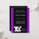 Convites de aniversário de crânio branco com um crânio e um gráfico ósseo cruzado.Fundo roxo e pontilhado preto que corresponde ao arco roxo do crânio. Personalizar com detalhes de sua parte.delícia
