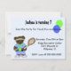 Um convite de festas de aniversário de Tênis excelente para personalizar com todas as informações do seu próprio filho. Possui um urso legal com seu traje de tênis, uma raquete e uma bola de tênis. Um casal de balões flutuantes coloridos também o sotaque. Um convite divertido de tênis.