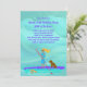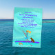 Modelo de convite de aniversário para festa de menina com prancha de paddle. Fundo gráfico de água azul turquesa e imagem desenhada à mão na parte inferior. O texto roxo é fácil de personalizar em três lugares para todas as informações da festa. Minha ilustração é de uma jovem loira remando em um SUP roxo. Seu cachorro marrom está junto para o passeio, e uma tartaruga marinha nada por perto.