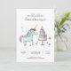 Convites de aniversário de unicórnio arco-íris bonitos para o seu aniversário de docinho. Gráficos de aquarelas bonitas de unicórnio, bolo e flores.