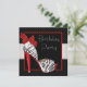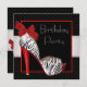 Convites de festa de aniversário elegantes de zebra vermelha. Este convite de festa de aniversário de sapato de salto alto de zebra preta e vermelha é facilmente personalizado para o seu evento, bastando escolher o botão "Personalize!" para começar a adicionar os detalhes do evento, estilo de fonte, tamanho e cor da fonte e texto. Por favor, note que todos os cartões e desenhos de convite que você encontrará no Zazzle são gráficos impressos sem joias, laços, relevos, ou peças ou partes adicionadas.