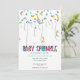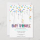 Convites de Baby Sprinkle com Drip de Frosting Doce e confeitos coloridos no verso.