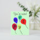 Balões de aniversário coloridos em azul verde amarelo alaranjado. Personalizar para o primeiro aniversário ou qualquer idade. Cartas festas escritas em balões. Design de Arte Original por TamiraZDesign.