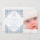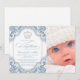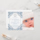 Convite de batismo de príncipe com bela coroa de diamante e escrita elegante em um fundo azul bebê e branco redemoinho. Este convite de batismo de príncipe azul elegante é facilmente personalizado para o seu evento, basta adicionar sua foto e detalhes do evento no estilo de fonte e cor, e redação de sua escolha. Este é um design impresso sem diamantes reais, lantejoulas, etc.
