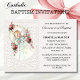 Este é um lindo Convite de Batismo Católico tradicional com uma menina segurando um terço com rosas ao redor dela. Todo o texto, fontes e imagens podem ser modificados.