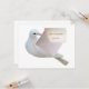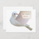 Um pombo segura uma nota especial. Adicione suas informações para usar em convites de Casamento, save the date ou anúncios de nascimento.