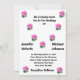 Personalize com os nomes da noiva e do noivo. Rosas cor-de-rosa espalhadas pelo convite com o nome do casal no lado oposto da página. O local onde o casamento ocorrerá, horário e Recepção a seguir na parte inferior da página.