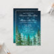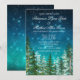 Convite de casamento noturno com luzes estelares e belas árvores da floresta em um lindo fundo azul escuro cintilante de estrelas. Estes belos convites de casamento rústicos da floresta com luz estelar noturna são facilmente personalizados para o seu evento, simplesmente adicionando seus detalhes no estilo de letra e redação de sua escolha.