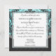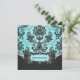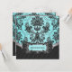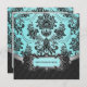 Convites azuis para casamento de Black Damask—correspondem aos cartões RSVP e ao pacote de casamento inteiro encontrados na parte inferior desta página. Cada convite apresenta um elegante e mais candelabro como impressão úmido em azul-piscina-aqua preto e claro, também conhecido como azul no topo com um pintuck de luxo ou impressão de travesseiro, também em preto no fundo. A metade superior e inferior são separadas por uma banda decorativa de prata e de cor preta, para adição de talho. A banda tem um modelo que permite que os nomes de noivas e noivos sejam impressos em cima dela. Estes convites para piscinas de casamento tema damasco azul/ preto estão definidos como existências de cartão básico de alta qualidade; entretanto, você pode mudar o estoque para linho, feltro (gravado), reciclado e várias tonalidades metálicas se quiser com o número 2 (escolha seu estilo, tamanho e tipo de papel) abaixo do botão laranja adicionar ao carrinho. Também nessa opção é apresentada uma lista dos custos adicionais de uma reserva de cartão mais antiga. Cada convite tem um envelope branco.
