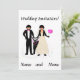 Um casal em couro, e material de casamento, com corações, confete e um buquê. Adicione nomes à frente e adicione detalhes à parte traseira, data de local, outros detalhes e RSVP. Também diz, sim, é um Casamento Biker. Você pode adicionar, alterar, excluir texto e recomeçar.