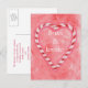 Linda e moderna pintura de bastões de natal vermelhos e brancos formando um coração, em um fundo gelado vermelho, rosa e branco, impresso em cartões postais de convite personalizados. Há formulários de modelo fáceis de usar prontos para personalização. Há itens correspondentes nesta loja. Obrigado por comprar na CherylsArt no Zazzle.