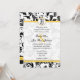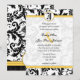 Convites de Casamento Florais Damasco Cinza e Amarelo. Elegantes Preto e Branco com Enfeites Amarelos. Perfeitos para os temas de casamento de Primavera, Verão ou Outono ou mesmo Renascentista, Medieval